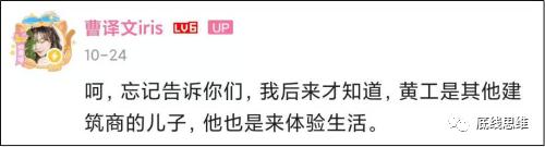 例如,当网友指责她这种体验生活方式不妥时,她的回应是,视频中监督自己的工头也是某建筑商的儿子,也在体验生活。