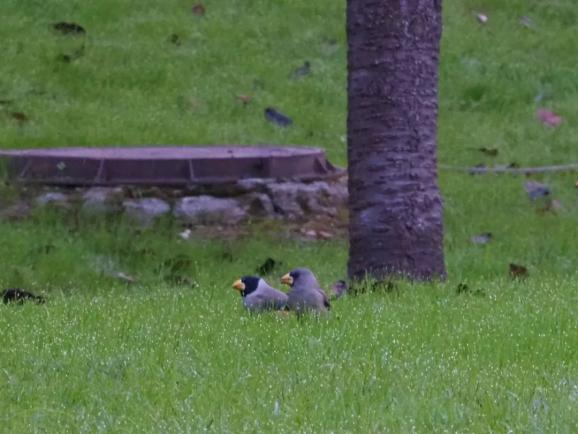 黑尾蜡嘴雀磕东西的时候常常发出明显的声音并掉下很多外壳和碎屑,所以集体进食时常伴随有噼里啪啦的“局部降雨”。星湖和信部二舍、六舍之间的、我从三食堂带饭回寝的必经之路两侧种了许多池杉,被黑尾蜡嘴雀肢解的种球和掉落的枝叶也曾经掉进我的饭里。