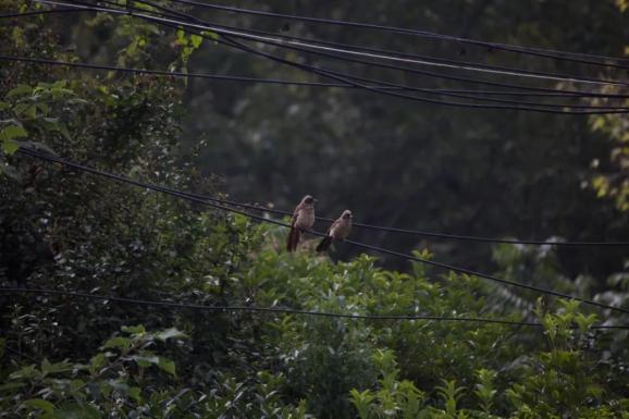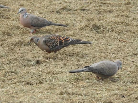 ��圆滚滚的山斑鸠(山斑鸠两旁是老朋友珠颈斑鸠)