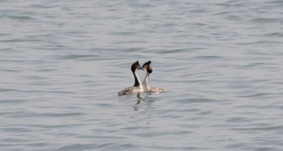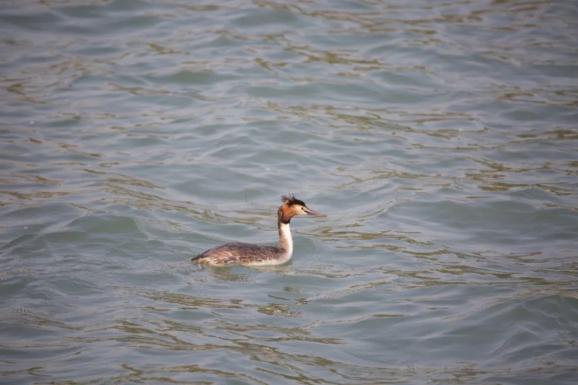 远远看上去就像一只在水面游泳的鸭子,但实际并不是鸭子。相比于鸭子扁平的嘴,凤头鸊鷉的嘴是尖的,因此也更擅长捕食鱼类。同时,凤头鸊鷉的脚在身体后部,靠近臀部,脚趾上也有花瓣似的脚蹼,适于潜水生活。凤头鸊鷉在冬季平平无奇,但到了夏季,身体颜色会鲜艳一些,头后面会长出两簇黑色羽毛,形成凤冠,因此被叫做凤头鸊鷉。