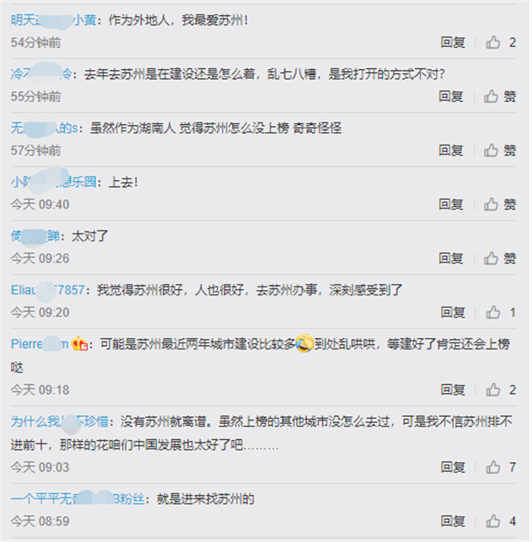 榜单发布后,一举登上微博热搜。网友纷纷在相关微博评论下为自己的家乡站台。不少江苏网友骄傲的同时,也笑谈“苏州怎么没上榜”。