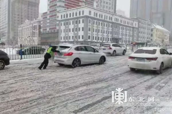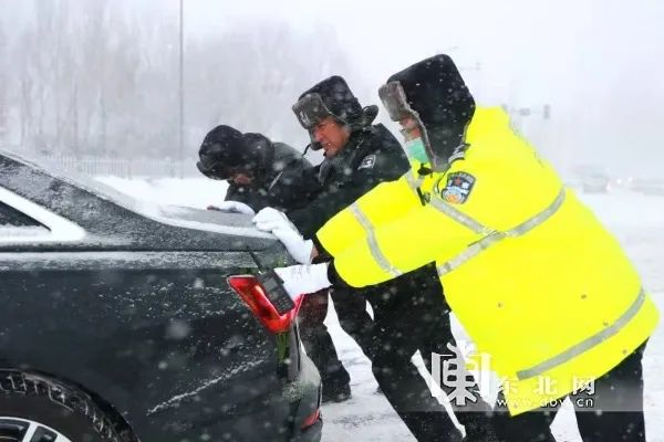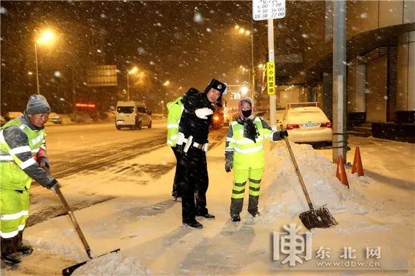 交警部门表示,针对雪天路滑,路口通过性差,车流严重积压的情况,中队间、大队间还协同开展主干道路的联动放行,以手势指挥形成绿波通行效应;岗位民警通过路口前置车辆等方式最大限度提高单位时间内通行效率,同时对饱和路段及时断车尾,避免路口拥堵。