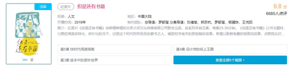 《但是还有书籍》是哔哩哔哩在去年底上线的一部纪录片,由胡歌配音,讲述了编辑、译者、二手书店店主、绘本作家、书籍设计师等人和书的故事。