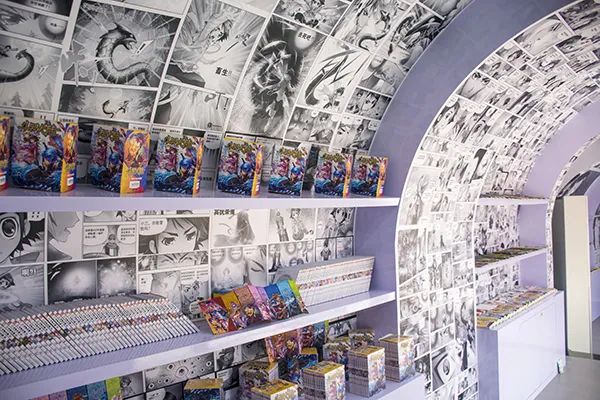在他一手策划的这家书店,好几个区域并不以卖书为主,“漫画次元站”单元,完美表达了他对漫画的热爱,曾经深刻影响了他童年和少年时代的那些标志性漫画,被做成墙纸,从墙壁一直延伸到天花板,让每一个进入这些单元的读者,都沉浸到那个充满梦想的漫画年代。