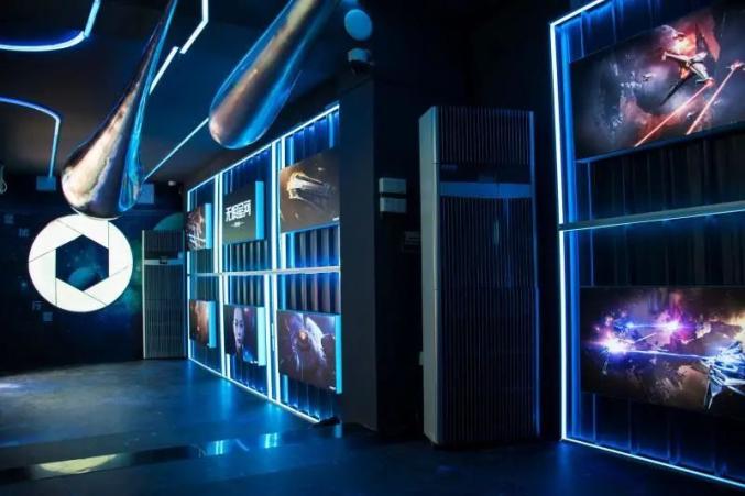 还有一个单元叫“有书籍·纸上王国”。千万不要被名称欺骗,这里大概也仅仅是“有书籍”,主题是轮换的,这一期的主题是“科幻次元”。与寥寥几本图书相比,场内的陈设手笔之大让人咋舌。陈设以《三体》为蓝本,设计了“水滴”“三体世界”“浩瀚宇宙”等场景概念,深蓝的背景,深邃的灯光,影片中的人物、场面被制作成灯箱,科幻感十足。