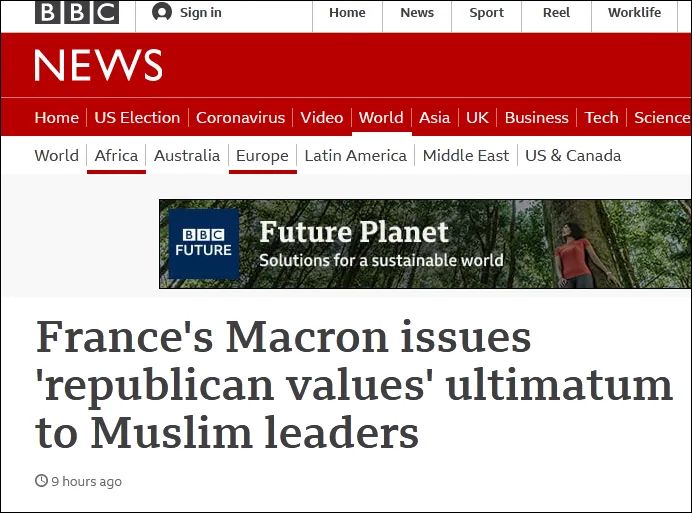 BBC:马克龙就“共和国价值”问题向穆斯林领导人发出最后通牒