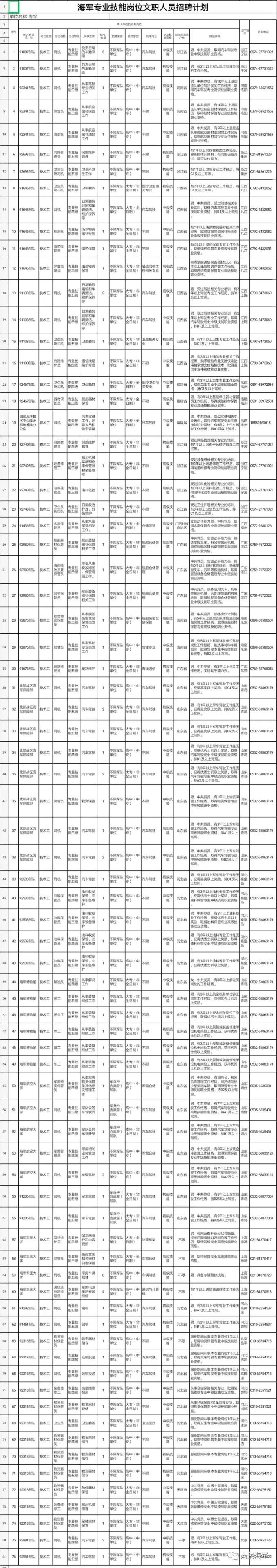 海军部队和院校、科研机构、卫生机构等单位专业技能文职人员岗位,主要包括装备维修、物资器材储存、卫生勤务、运输投送等,共100个。