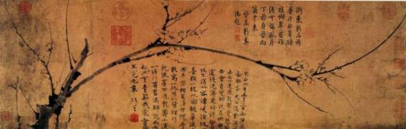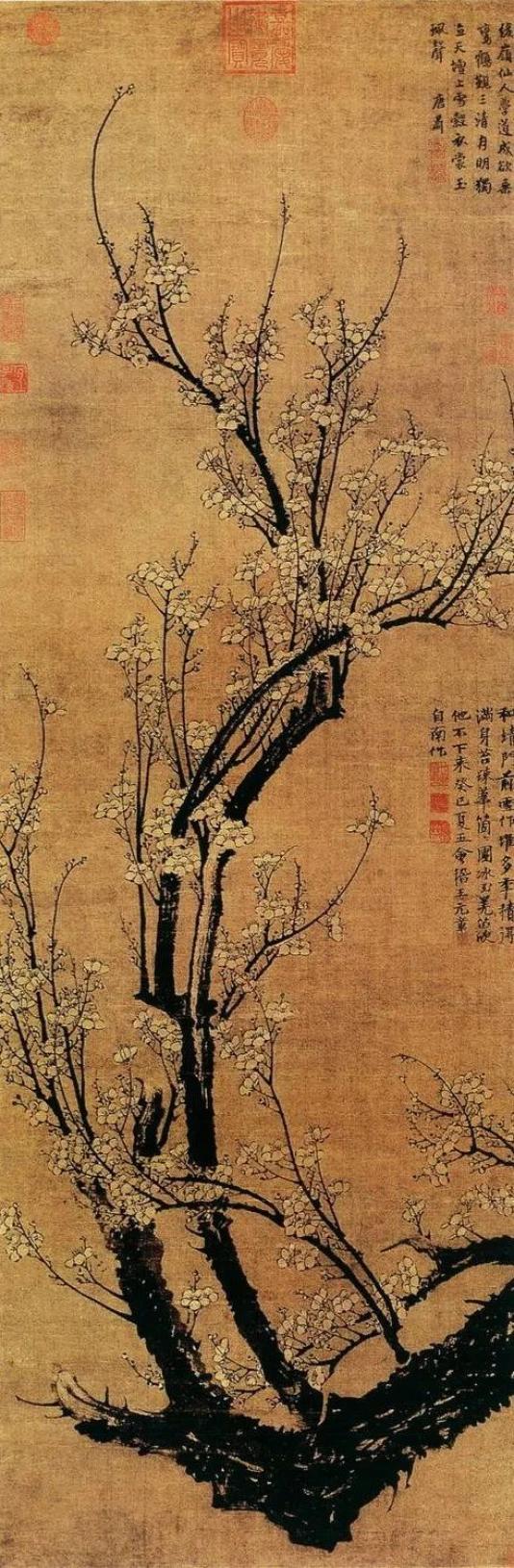 有梅之记,始见于《西京杂记》汉初修上林苑,远方各献名果异树,有‘朱梅’、‘胭脂梅’。迄今2000年矣。梅入画,有史载始于南北朝,至宋僧仲仁方盛,称“墨梅始祖”。