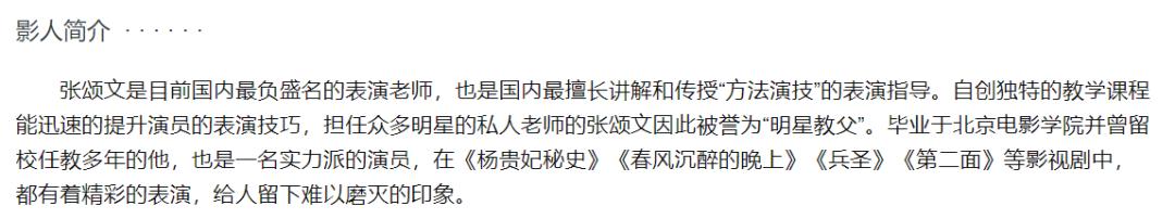 “担任众多明星的私人老师的张颂文因此被誉为‘明星教父’。”