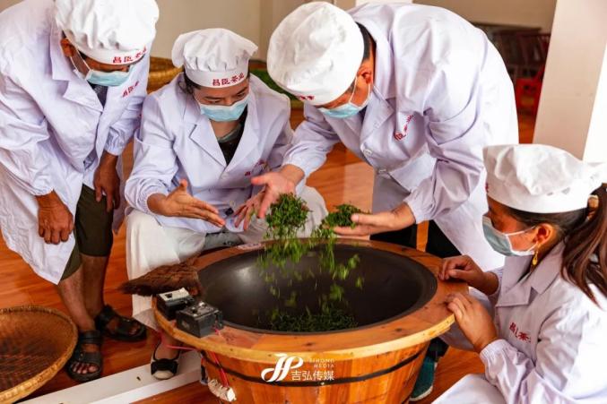采摘→摊青→杀青→揉捻→炒制→整形→筛选→包装→储藏,一道道工序都有其独到的技术要求和操作诀窍,是一般的茶叶加工技术难以比拟的,一些关键性加工环节是无法用现代机械设备所替代,即使在人类未来社会发展中,仍然还是可以重新认识,再度利用的无价之宝。