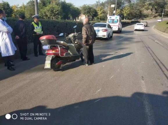 近日,涪陵公安交巡警龙桥勤务大队根据警情到国道348线1214公里+200米(长江二桥立交)路段处理一起交通事故。到达现场后发现,这是一起二轮电动车与小车发生侧面擦挂的交通事故,其中,电动车驾驶员吴某有轻微受伤。