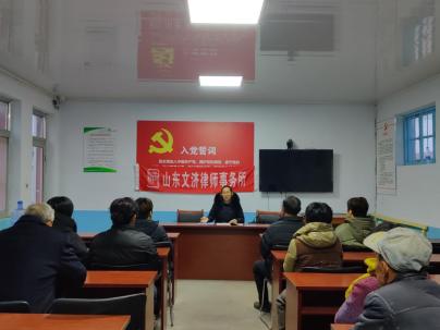 为积极响应莱州市司法局党员律师普法宣传走基层的号召,充分发挥“一村(社区)一法律顾问”律师服务基层的作用,近期山东文济律师事务所迟宗琳律师走进莱州市驿道镇费现村、邱家村、集后村以专题讲座形式深入群众,开展《民法典》讲座。