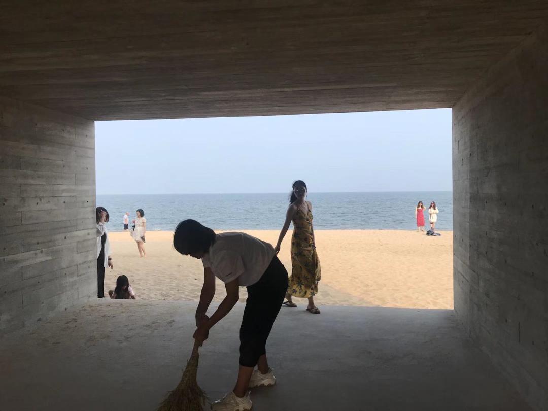 沙子被鞋底带进场馆不可避免,想象中,旭日杲杲涉沙而行充满诗意,落到现实却是满脚泥沙。