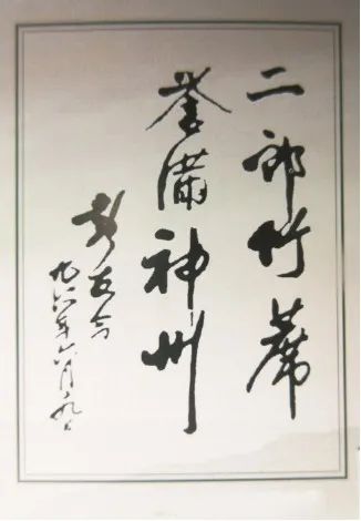 1996年6月9日,第六届全国政协秘书长彭友今(大竹县二郎乡罗家村人)提笔“二郎竹席 誉满神州”