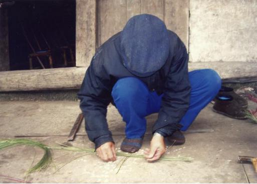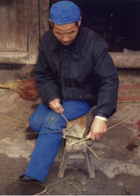 将排好带用块块踩好,就开始打包袱,一般是检青篾,打二黄长篾,打完长篾就上包袱,上包袱马上就要出河。即是确定席宽、窄关键。