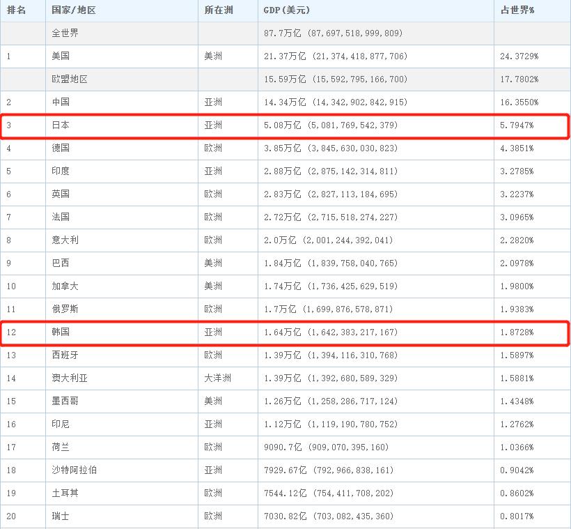 在GDP上,2019年日本GDP为5.08万亿美元,排名第3,高于英法德等老牌强国。