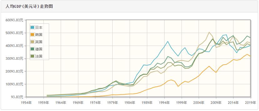 其次,人均GDP,日韩两国虽然稍逊于英法德,但也都超过了3万美元,远高于2万美元的发达国家门槛。