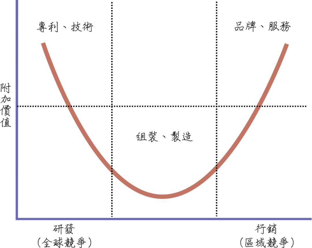 有人把中国与日韩比较,指出国内大部分产业处在微笑曲线的中间,日韩处于两端。