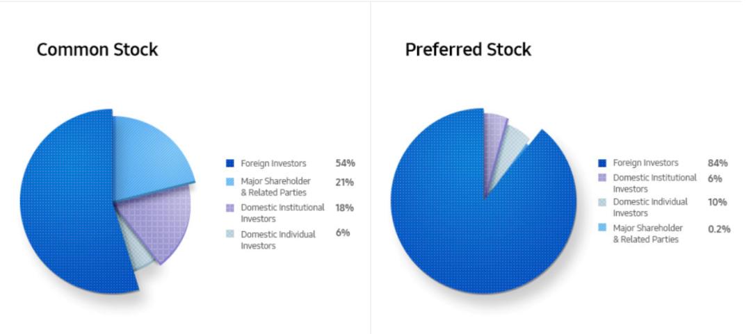 而三星集团最大的利润池、占韩国股市市值20%多的三星电子,据其2020年第二季度股权结构,普通股外国投资者(多数为美国投资者)占比为54%,优先股占比更是高达84%。