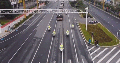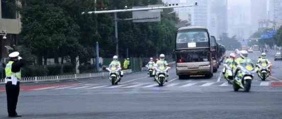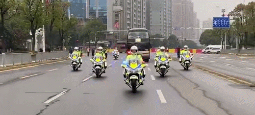 交警开道,沿途敬礼……