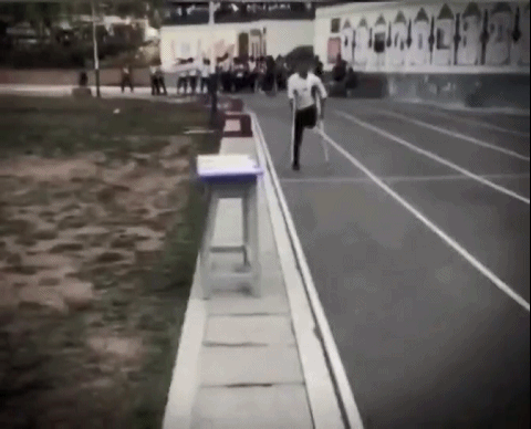 他选择用双拐和单腿跳,完成这1000米比赛。