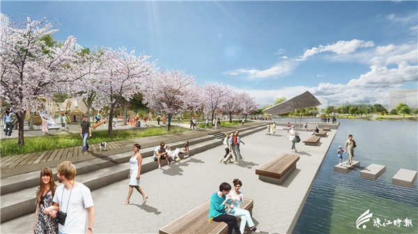 此外,在映月湖二期扩建过程中,还将对周边低矮落后厂房进行整理,设置景观平台以及亲水风雨亭等亲水平台,让市民能近距离享受滨水景观的自然与乐趣。