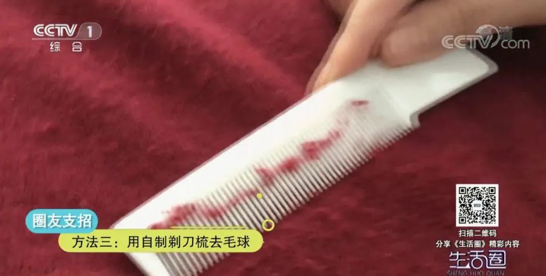 顺着毛衣纹路刮掉毛球,毛球一下就被刮下来了~