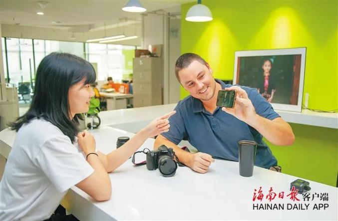 在海口复兴城互联网创新创业园,热带海南英文网的工作人员和客户在交流沟通。随着开放脚步越迈越前,海南正成为我国最开放、最具吸引力和活力的地区之一。“4·13”至今,全省共引进人才20.1万人,《百万人才进海南行动计划(2018-2025年)》提出的初期目标已经完成。海南日报记者 张茂 摄