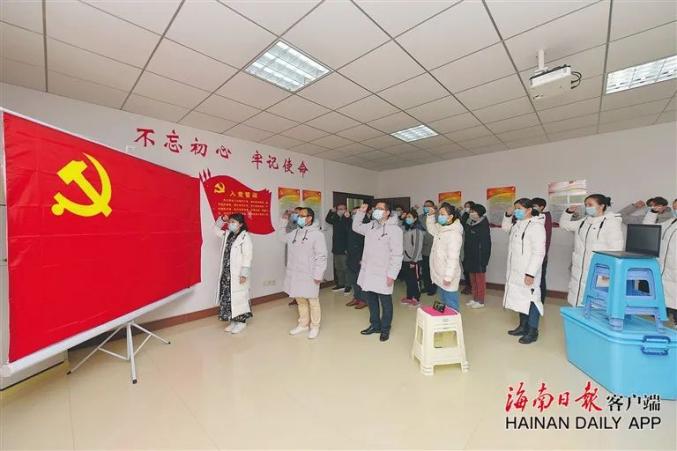 今年3月2日,在湖北省荆州市中医院党员活动室, 24名海南医护工作者面向鲜红党旗宣誓,火线入党。在新冠肺炎疫情中,海南坚持关口前移,落实“四早”“四集中”等措施,全力应对“三个大考”,新冠肺炎疫情防控取得重大战略成果。同时先后派出7批865名医护人员驰援湖北,并选派专家团队赴孟加拉国帮助开展疫情防控。海南日报记者 袁琛 摄
