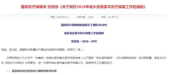 2020年居民医保人均财政补助标准新增30元,达到每人每年不低于550元,个人缴费标准同步提高30元。