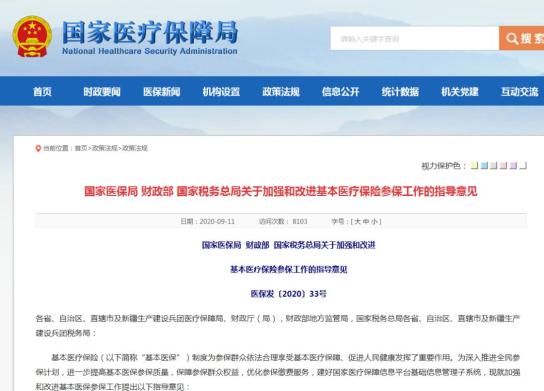 今年9月,国家医保局、财政部、国家税务总局联合发布《关于加强和改进基本医疗保险参保工作的指导意见》,提出阶段性目标:自2021年参保年度起,全国参保信息实现互联互通、动态更新、实时查询,参保信息质量明显提升;到2025年,基本医保参保率稳中有升,管理范围水平明显提升,群众获得感满意度持续增强。