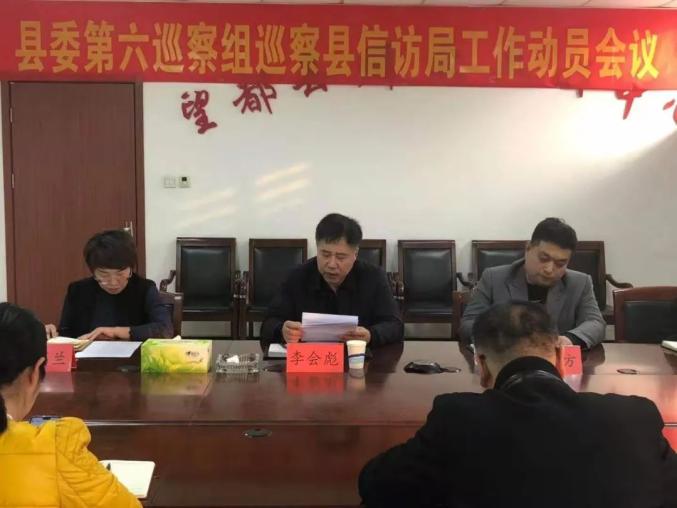 根据县委统一部署,县委第六巡察组对望都县信访局开展常规巡察。12月2日,组织召开巡察工作动员会。县纪委副书记、监委副主任、县委巡察工作领导小组成员李会彪同志、县委第六巡察组组长马立方同志及巡察组一行五位同志出席会议,县信访局领导班子成员、全体干部职工参加会议。会议由信访局长葛瑞兰主持。