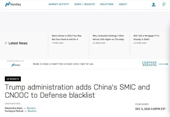 早在11月底,便有消息爆出,特朗普政府正在计划将中芯国际以及中国海洋石油公司加入“国防部黑名单”中。特朗普政府认为中国军方借助这些公司窃取美国高端敏感技术。