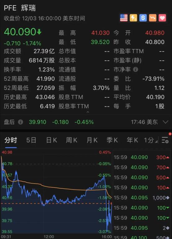 在辉瑞年内产量目标将减半消息拖累下,美股尾盘也跳水。