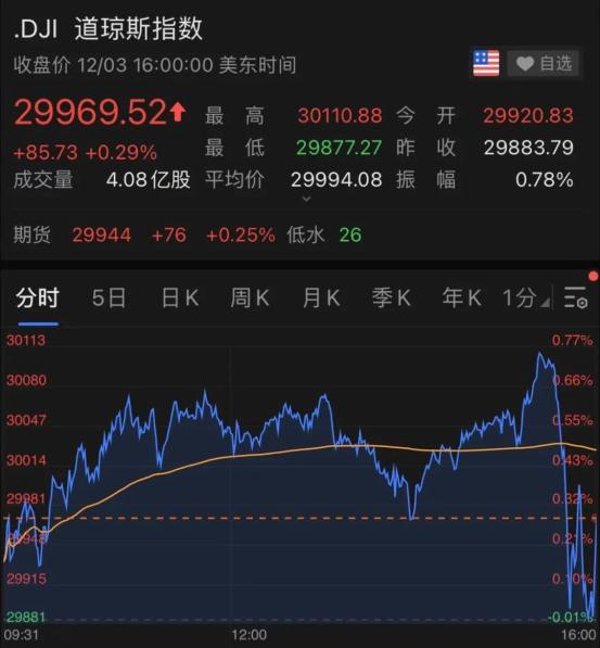 在辉瑞利空消息爆出之前,三大股指走势向上,纳指、标普500创盘中新高。