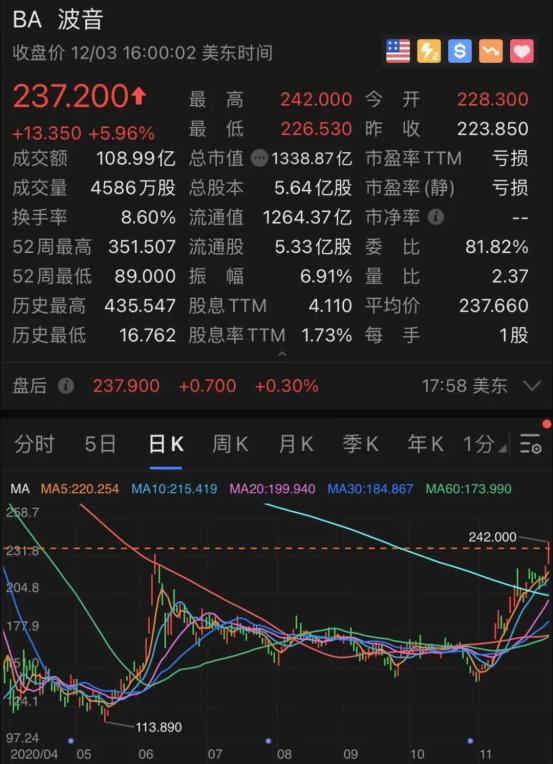 截至周四收盘,波音涨5.96%,创三月以来新高,刷新疫情后的股价高点。