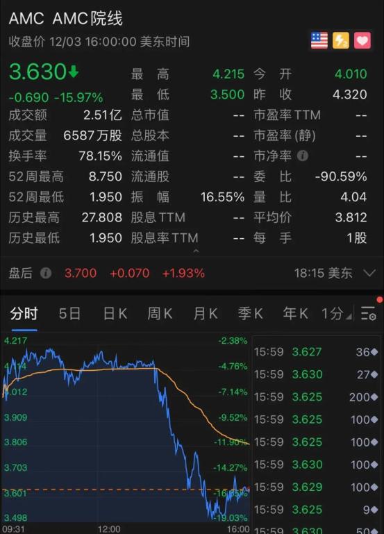 受此消息影响,周四收盘AMC院线跌15.97%。