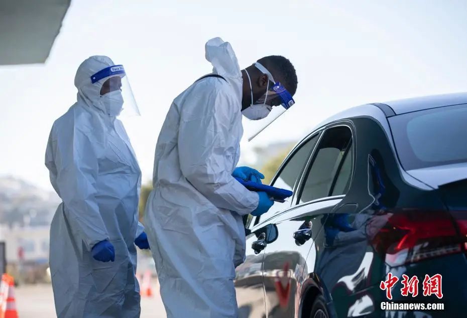 当地时间12月1日,设立在美国加州旧金山Alemany农贸市场的“得来速”式新冠病毒检测站向市民提供检测服务。随着病例的激增,旧金山加强了检测力度。 中新社记者 刘关关 摄