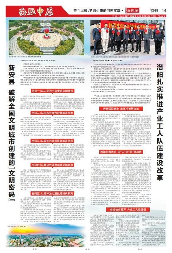 以党的十九大代表刘新安、全国人大代表邢京龙为首的产业工人典型,彰显了新时代洛阳产业工人的风采。