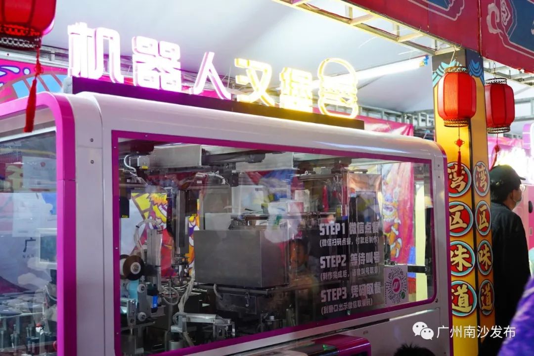 在活动现场,市民可品尝由近60家商家带来的超500款名菜,包括葵花鸡、十四涌海鲜煲粉莲藕、黄阁烧腊等南沙本土美食及符合年轻人口味的各地特色小吃;亦可通过近距离观赏粤菜名厨雕花展示,感受粤菜文化精髓。此外,现场特设高科技智能自助区,市民可自助品尝汉堡、棉花糖和咖啡等美食,体验高端智能美食机带来的智能化服务与乐趣。