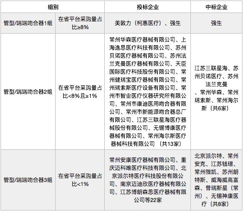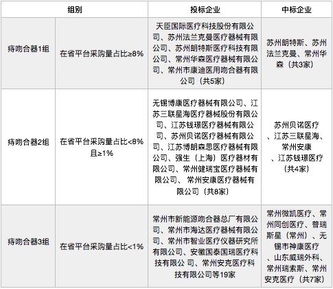 天臣医疗在三个集采品类中均有产品参与竞价,但最后中标的是一款开放直线型切割吻合器(1组,4家中3);乐普医疗旗下江苏博朗森思、常州伊沃特、常州瑞索斯、无锡博康4家公司共8款产品参与了此次集采竞标,最终是常州瑞索斯的两款产品中了标(痔吻3组、管型2组);此外,戴维医疗(300314.SZ)全资子公司宁波维尔凯迪此前曾有两款产品参加了四省联盟集采,中标一款,但公司未参加此次江苏集采。