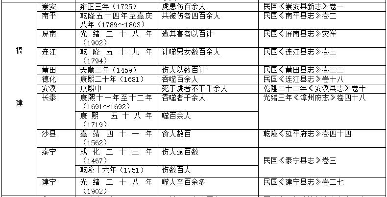 福建各地老虎食人的不完全统计