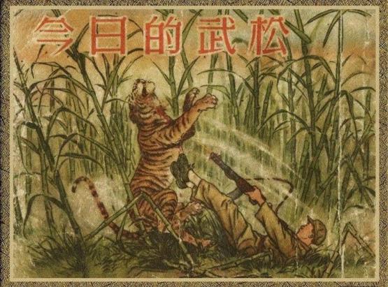 武松打虎是赤手空拳,在各种绘本连环画中,武松跪坐在老虎身上,一只手按住虎头,另一只手则乱拳将其打死。