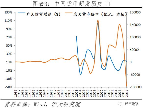 自改革开放以来,中国货币增速大涨,2000年至2018年,中国基本处于货币超发状态,共有5轮货币超发达到峰值的时期,分别为2003年、2005年、2009年、2012和2015年。从指标来看,名义货币缺口与货币过剩率均大于0,表明1978年以来我国处于货币超发状态。从信贷方面来看,我国在2006-2007、2009以及2016-2017经历三轮大的信贷扩张,其中2009年受宽松货币政策、财政政策刺激影响,广义信贷同比达107%。