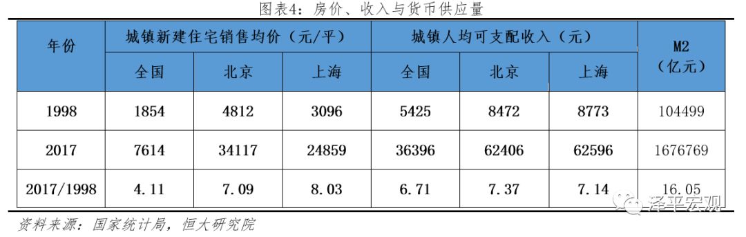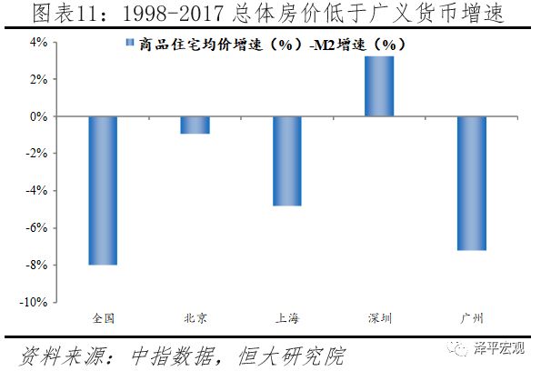 此外,根据我们提出的长期看人口、中期看土地、短期看金融的分析框架,与二三四线城市相比,一线城市长期人口流入、产业导入以及居民消费升级促使住房需求上升,中期土地供应垄断,房产价格具有天然升值的内在动力,短期内对货币超发更为敏感。货币超发的刺激使得一线房价快速上涨,导致一线城市地价、房子复合增速与货币增速相差不大、基本持平,而二三四线城市人口流出、供地相对充足作为缓冲垫,使得房地产溢价相对有限,房地产价格区域分化明显。