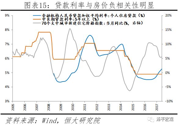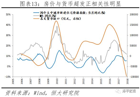 从我们提出的长期看人口、中期看土地、短期看金融的房地产周期分析框架可以得出,过去我国房价区域分化,一线城市房价快速上涨的原因,一部分是由于长期人口流入、产业导入以及居民消费升级促使住房需求上涨,反映的是房地产的商品属性;而另一部分则是货币超发、土地供给垄断所引起的投机需求导致房价快速上行,反映了房地产的金融属性。短期内,货币超发、贷款利率下行等金融因素均对房价有着明显的刺激作用,2005-2017年M1、M2以及贷款利率与房价相关性明显,M1、M2上升、贷款利率下降均伴随着房价的新一轮上涨。