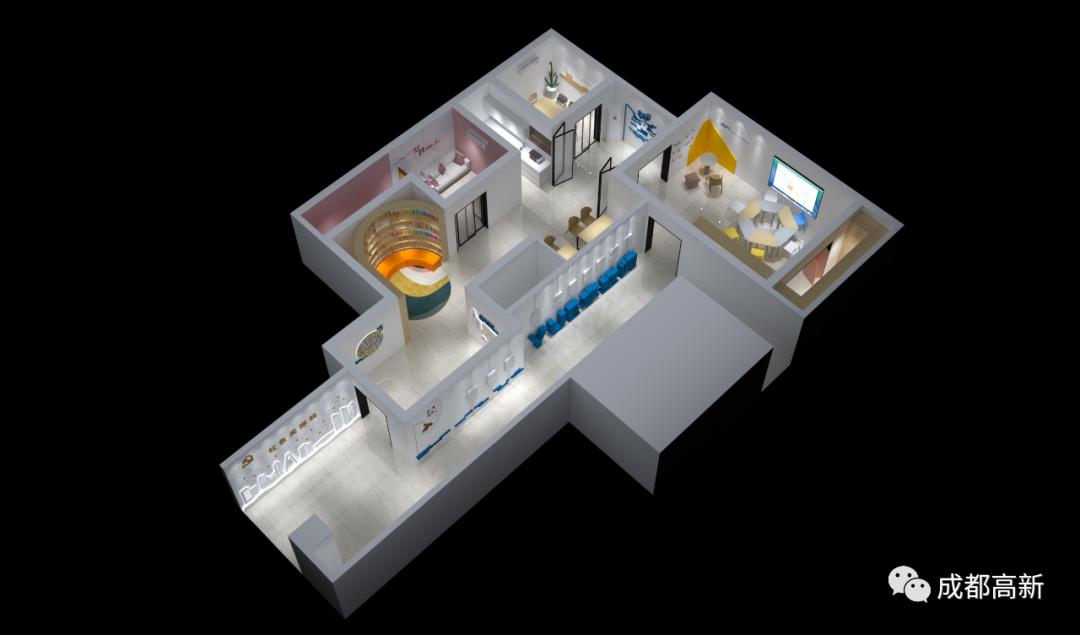 位于天府二街高新区文化体育指导服务中心分中心,面积大约40平米。主要内容包括有声图书馆、盛华有声故事录制、耳机森林等。