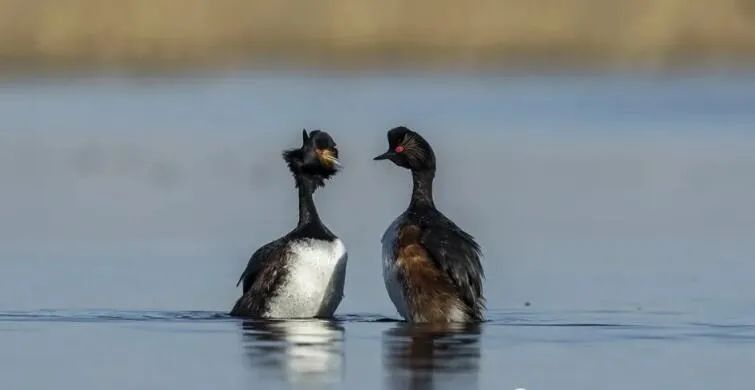 12月7日下午,安徽省珍稀鸟类保护工作者联合会,在滨湖湿地森林公园观鸟。当他们到了明珠码头附近,在巢湖里发现大量水鸟,其中的角鸊鷉(pìtī)、黑颈鸊鷉、小䴙䴘和凤头鸊鷉最为耀眼。
