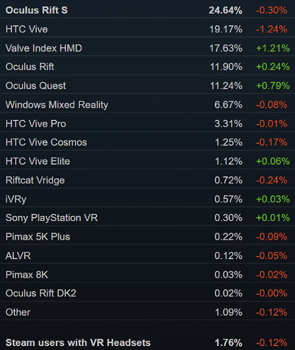 根据10月Steam硬件和软件调查报告,Index的份额最新份额达到了 17.63%,已经非常接近身前的HTC Vive(19.17%),下次统计中或许大概率就将实现反超。