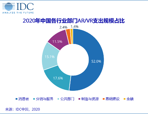 在IDC支出指南中,各行业在VR/AR支出类别被归类为消费者、分销与服务、金融、基础设施、制造与资源及公共部门等行业部门。